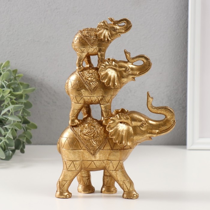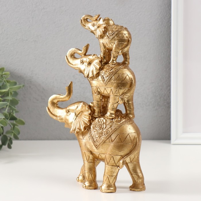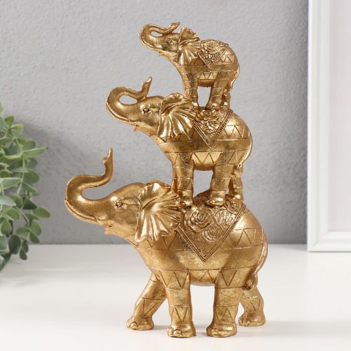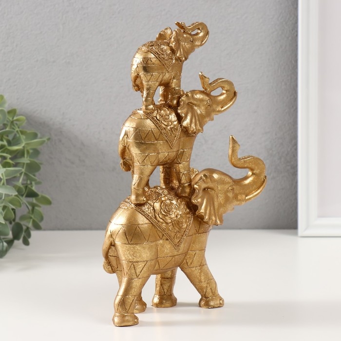 Сувенир полистоун "Пирамида из 3 слонов" золото 6,5х15,5х24 см
