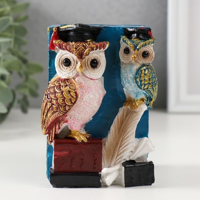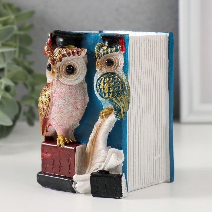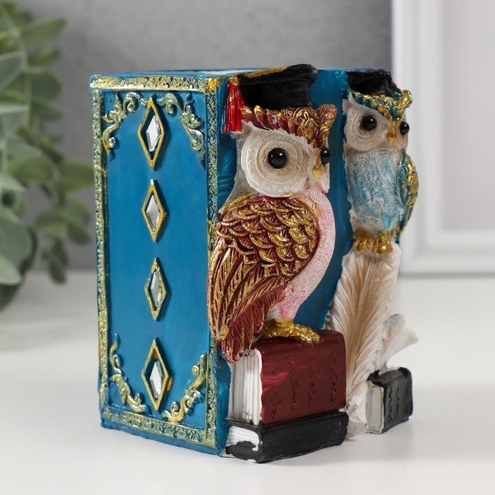 Сувенир полистоун карандашница "Ученые филины" 7х7х11 см