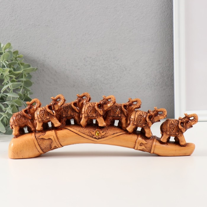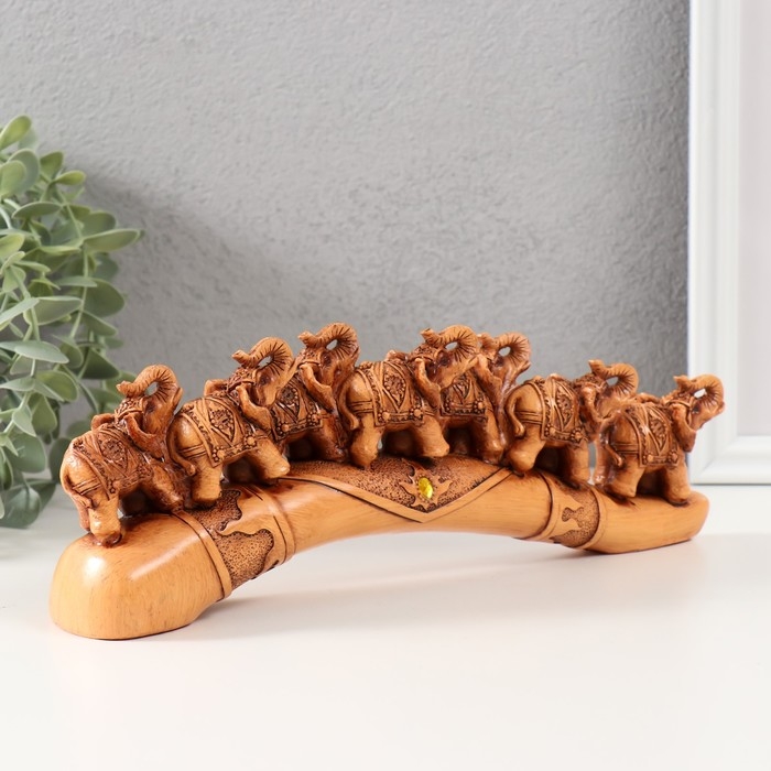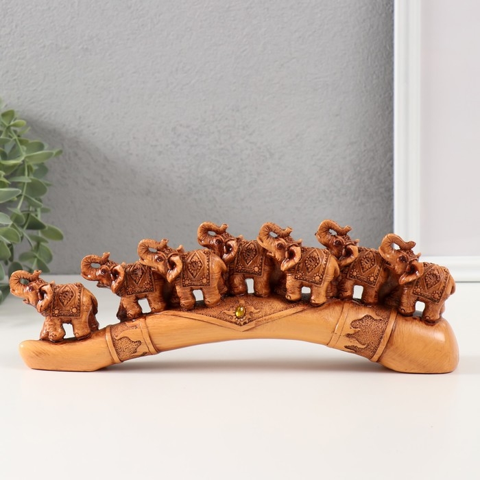 Сувенир полистоун "Семь слонов на бивне" под дерево 4,6х29х10 см