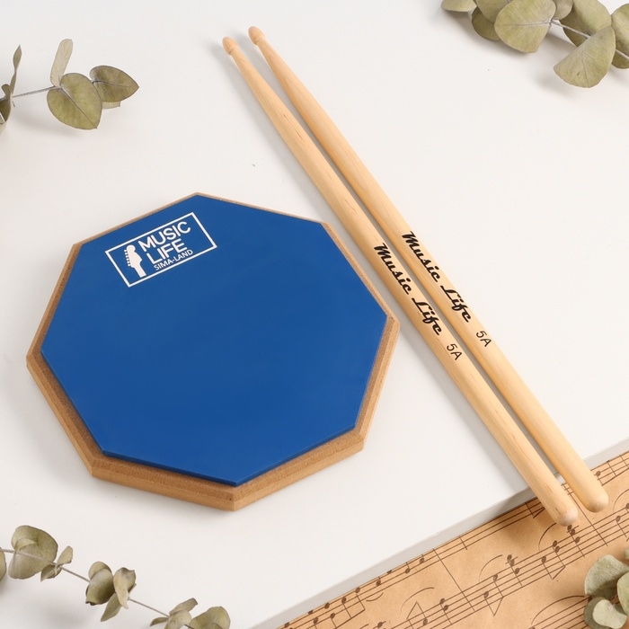 Набор барабанщика Music Life: Пэд тренировочный, d-8 дюймов + барабанные палочки, синий