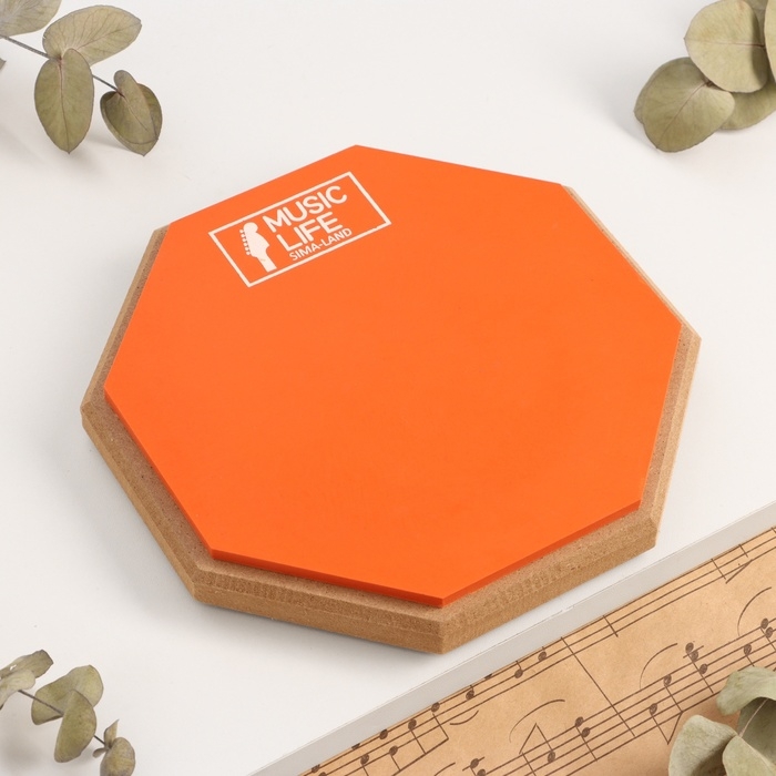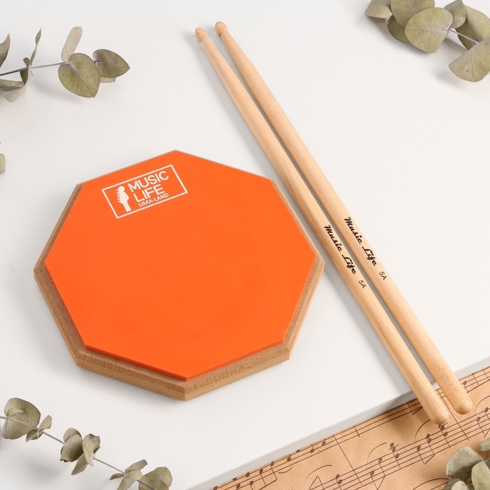 Набор барабанщика Music Life: Пэд тренировочный, d-8 дюймов + барабанные палочки, оранжевый