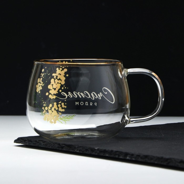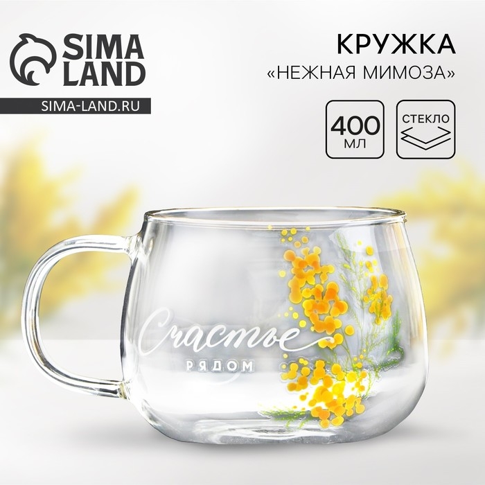 Кружка стеклянная «Счастье рядом. Нежная мимоза», 400 мл