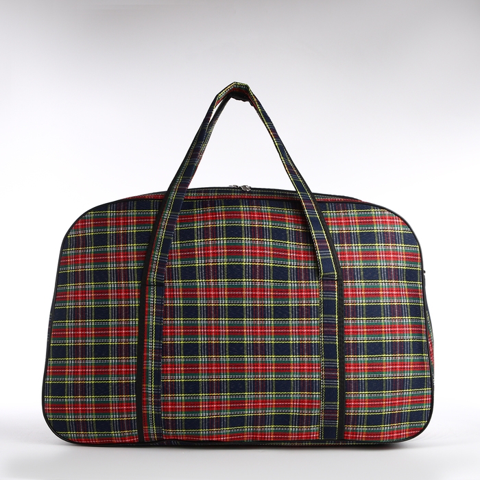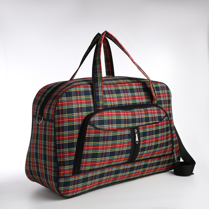 Сумка дорожная на молнии, наружный карман, длинный ремень, цвет красный/зелёный