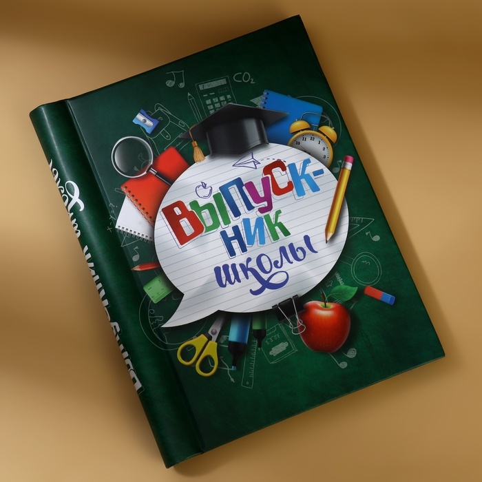 Фотоальбом на выпускной «Выпускник школы» 20 магнитных листов, цвет страниц чёрный