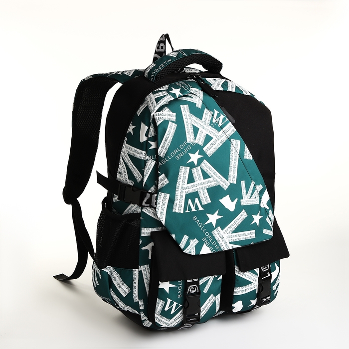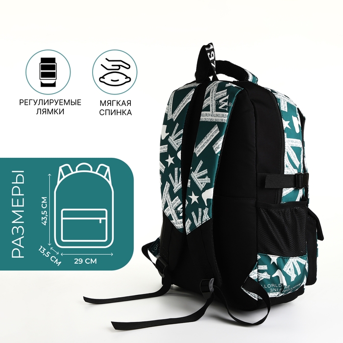 Рюкзак школьный из текстиля на молнии, наружный карман, цвет зелёный