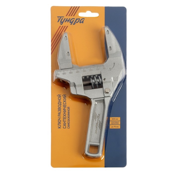 Ключ разводной сантехнический ТУНДРА, самозажимной, храповой механизм, до 75 мм, 200 мм