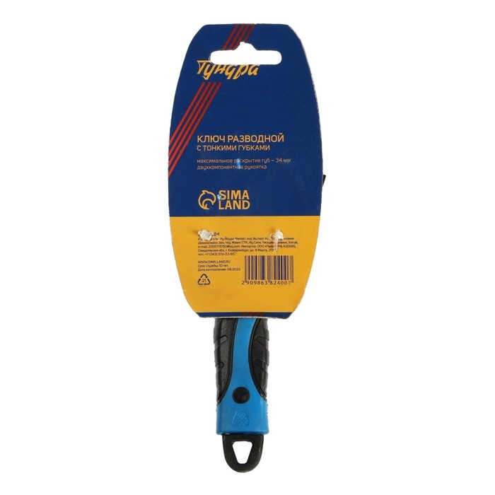 Ключ разводной с очень тонкими губками ТУНДРА, 2К рукоятка, толщина 2.5 мм, до 34 мм, 150 мм 98638