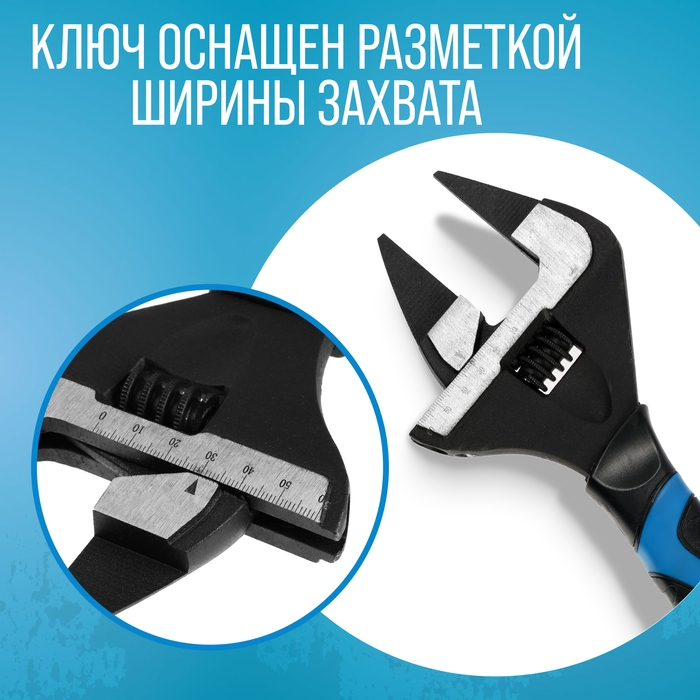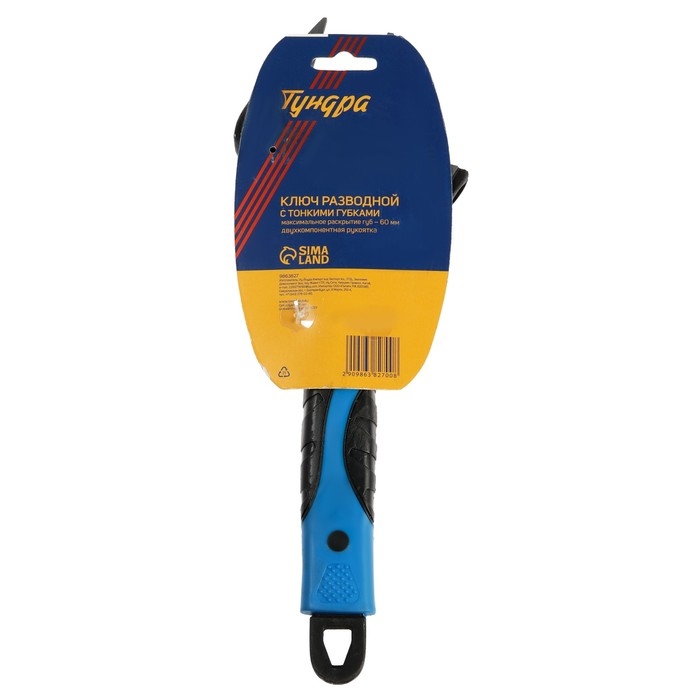 Ключ разводной с очень тонкими губками ТУНДРА, 2К рукоятка, толщина 4 мм, до 60 мм, 300 мм