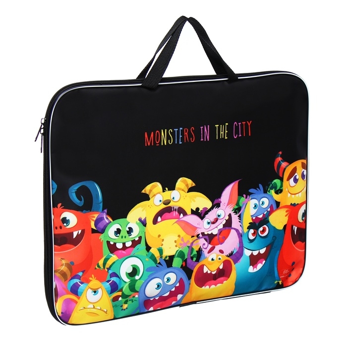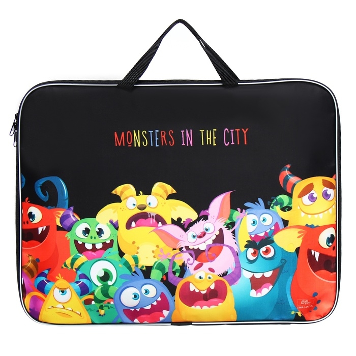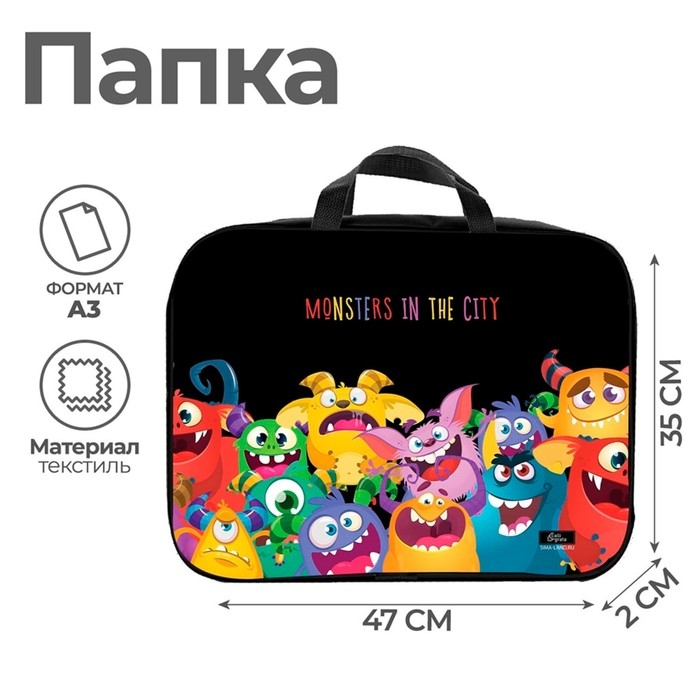 Папка для чертежей и рисунков А3, 470 х 350 х 20 мм, с ручками, текстильная, Calligrata "Монстрики"