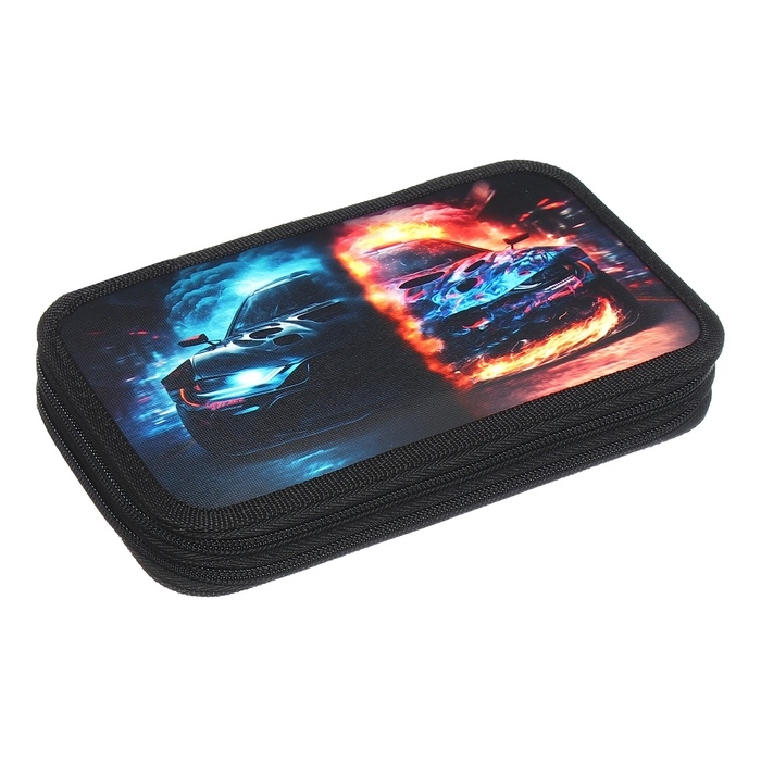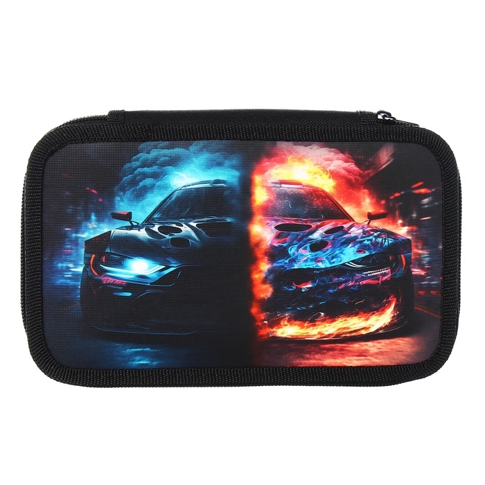 Пенал 2 секции, 125 х 205 х 40 мм, Calligrata 30П26/2 "Тачка огонь", ламинированный картон
