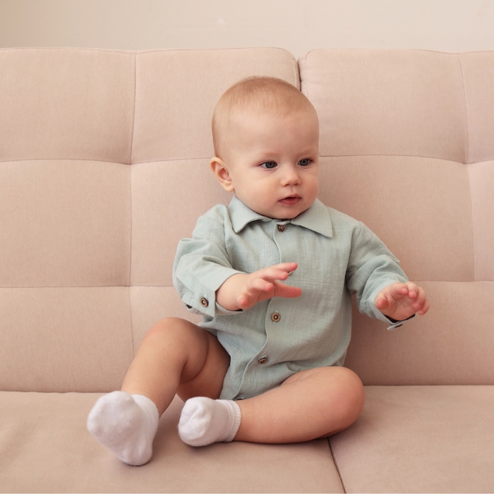 Боди-рубашка для мальчика MINAKU, цвет серо-зеленый, размер 68-74 см