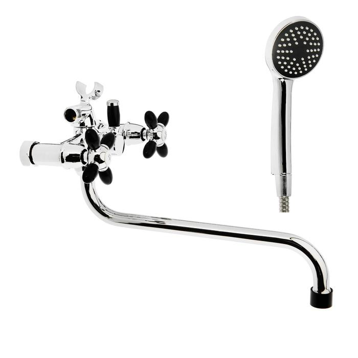 Смеситель для ванны Accoona A7182F, двухвентильный, с душевым набором, силумин, черный/хром