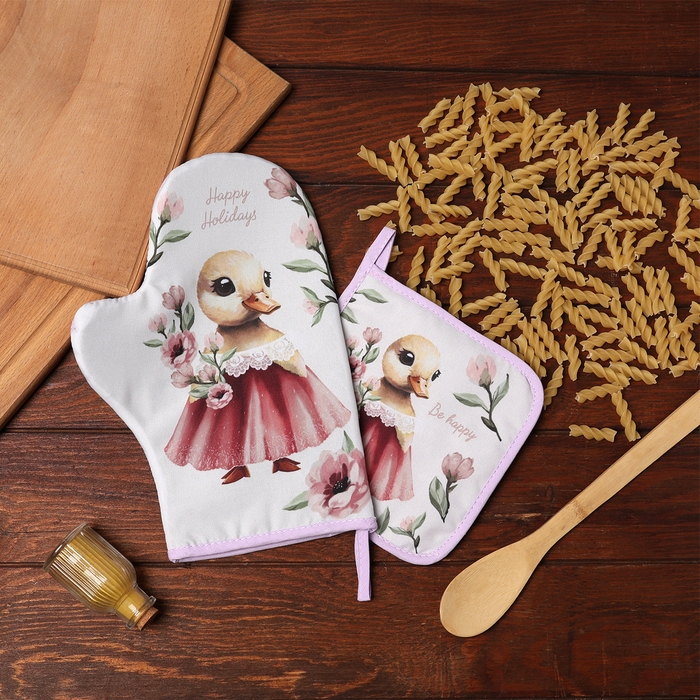 Набор кухонный Доляна "Уточка": варежка 20х28 см, прихватка 17х17 см, 35% хлопок, 65% п/э