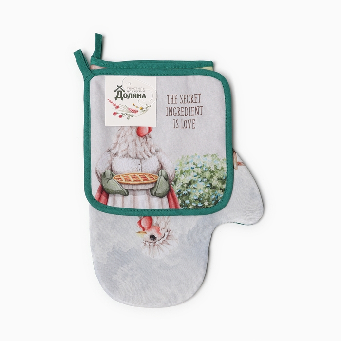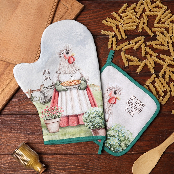 Набор кухонный Доляна "Курочка": варежка 20х28 см, прихватка 17х17 см, 35% хлопок, 65% п/э