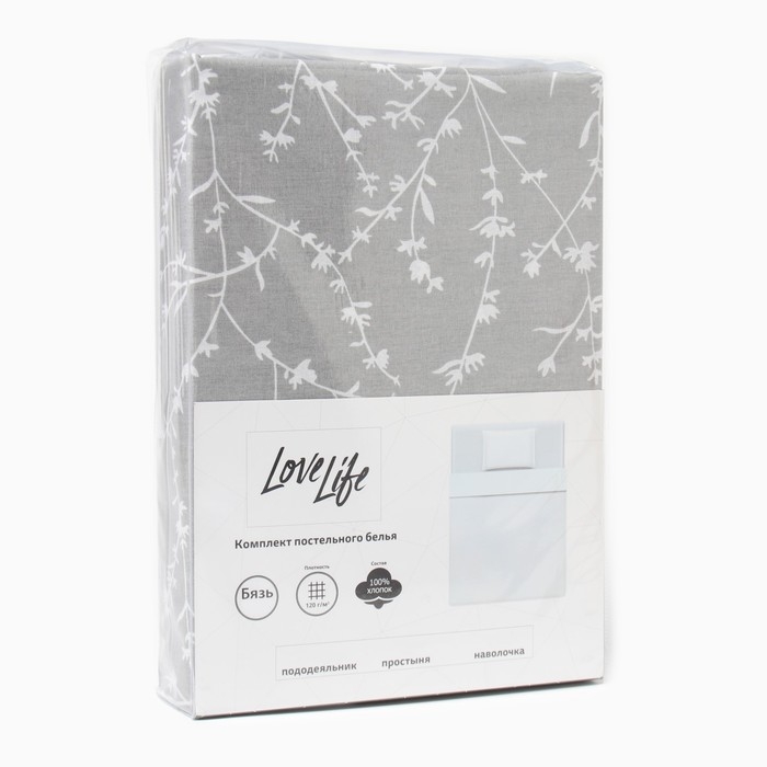 Комплект постельного белья LoveLife 1.5 сп "Ветви" цв.серый 147*210,150*215,50*70 -1 шт,100% хлопок,бязь 120 г/м2