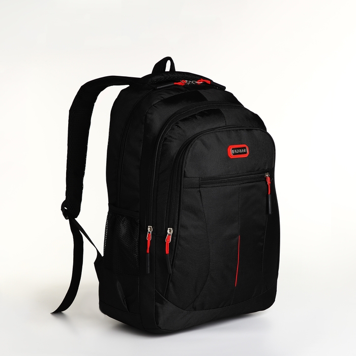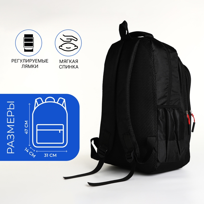 Рюкзак школьный на молнии, 5 карманов, цвет чёрный/красный