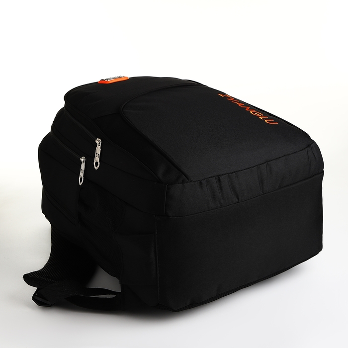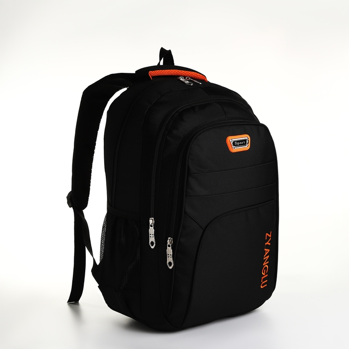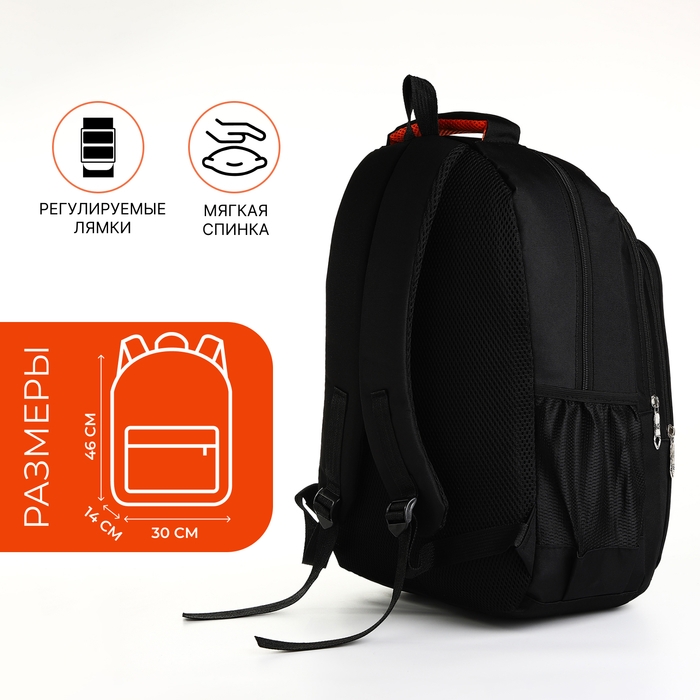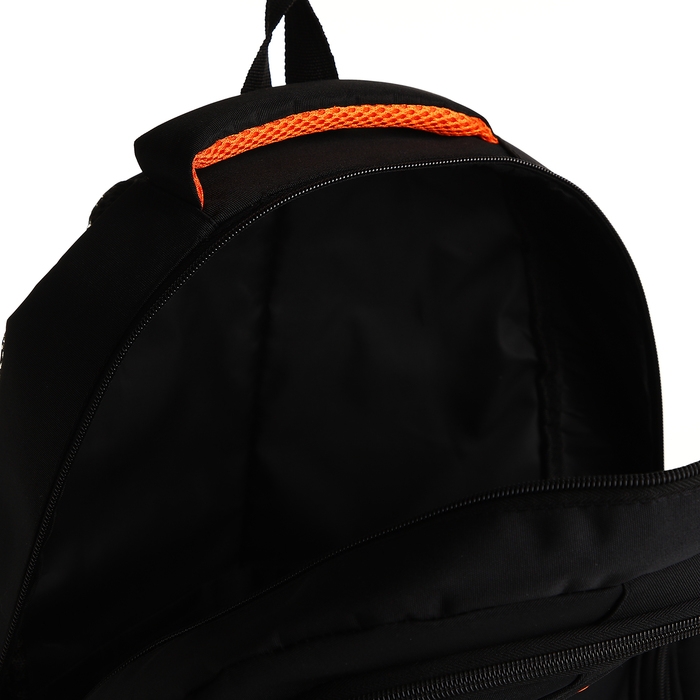 Рюкзак школьный на молнии, 4 кармана, цвет чёрный/оранжевый