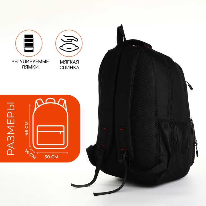 Рюкзак школьный на молнии, 6 карманов, цвет чёрный