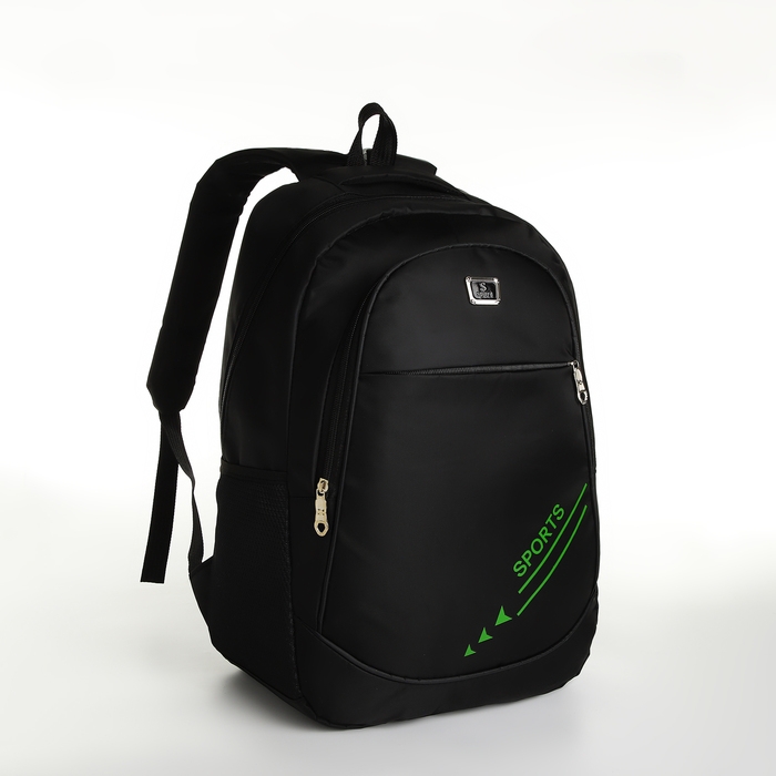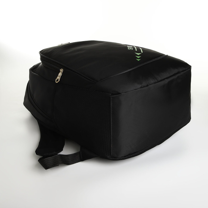 Рюкзак школьный на молнии, 4 кармана, цвет чёрный/зелёный