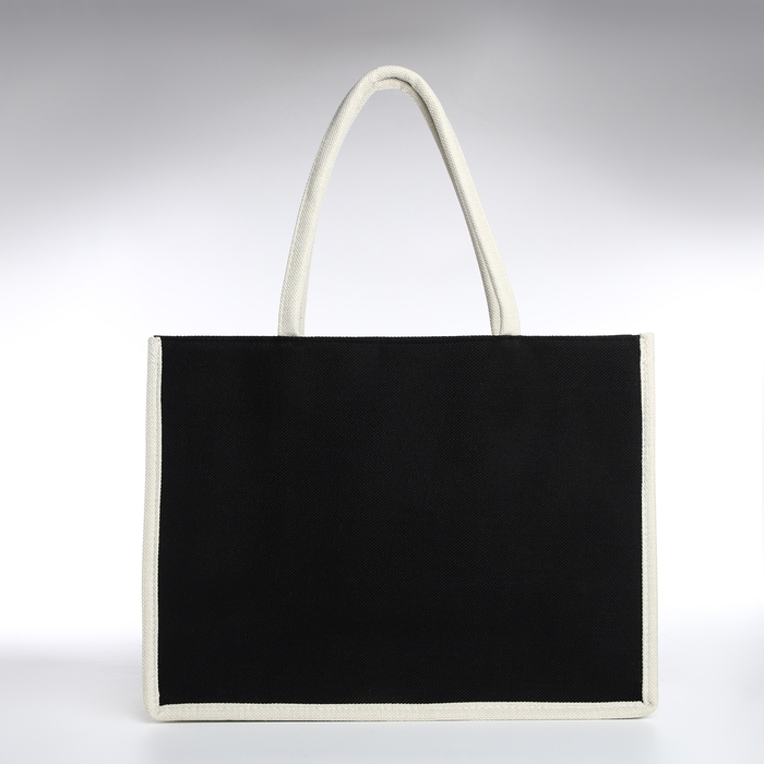 Сумка пляжная без застёжки, цвет молочный/чёрный