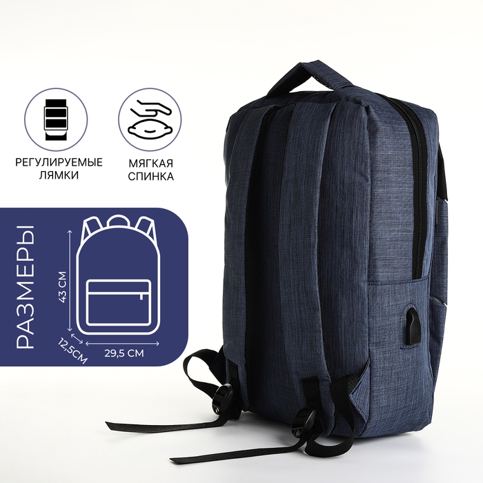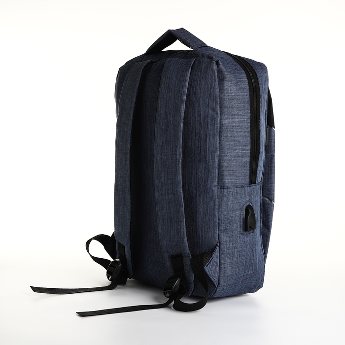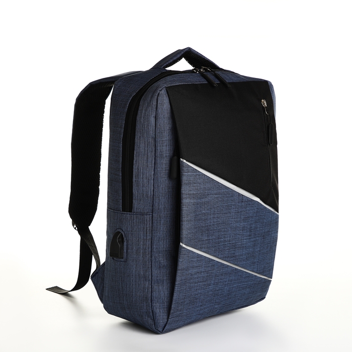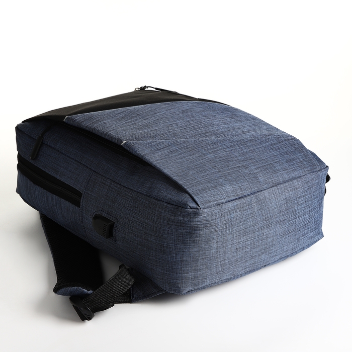 Рюкзак школьный на молнии, 2 кармана, с USB, цвет чёрный/синий