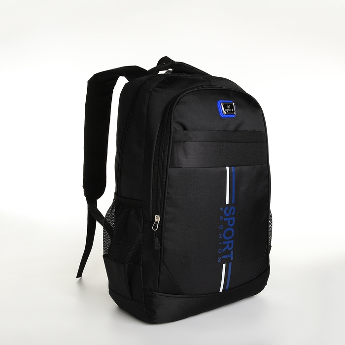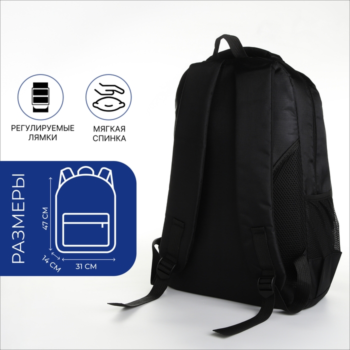 Рюкзак школьный на молнии, 4 кармана, цвет чёрный/синий