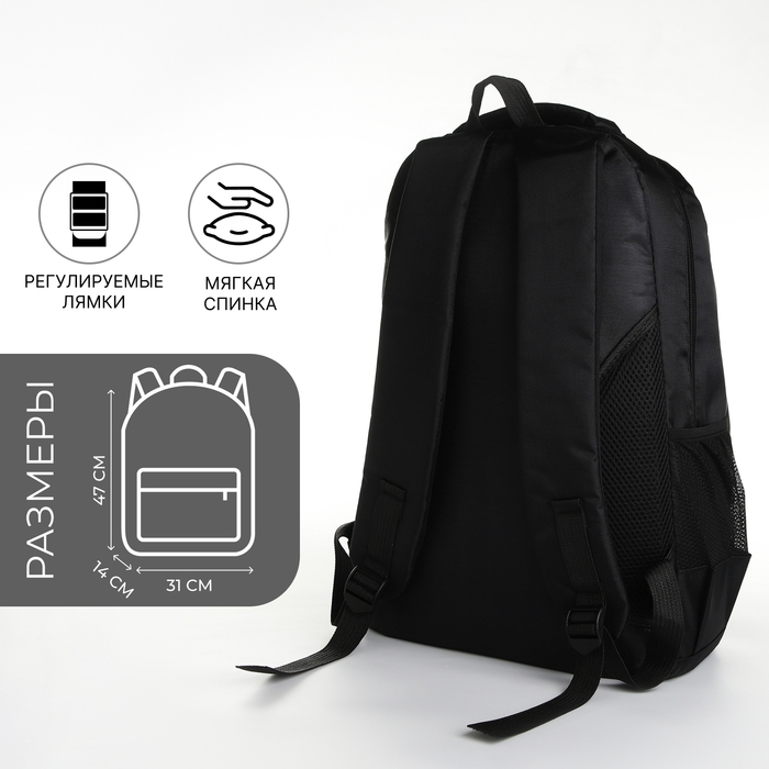 Рюкзак молодёжный на молнии, 4 кармана, цвет чёрный