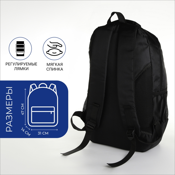 Рюкзак школьный на молнии, 4 кармана, цвет чёрный/синий