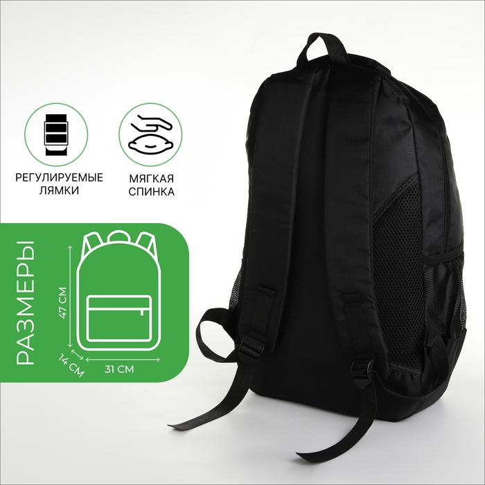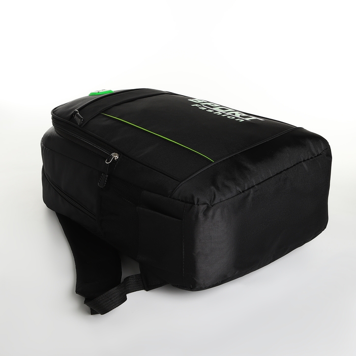 Рюкзак школьный на молнии, 4 кармана, цвет чёрный/зелёный
