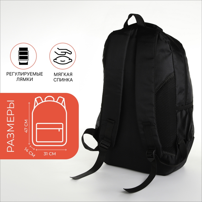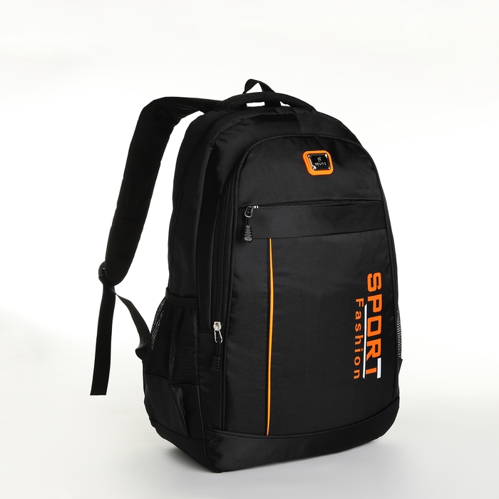 Рюкзак школьный на молнии, 4 кармана, цвет чёрный/оранжевый
