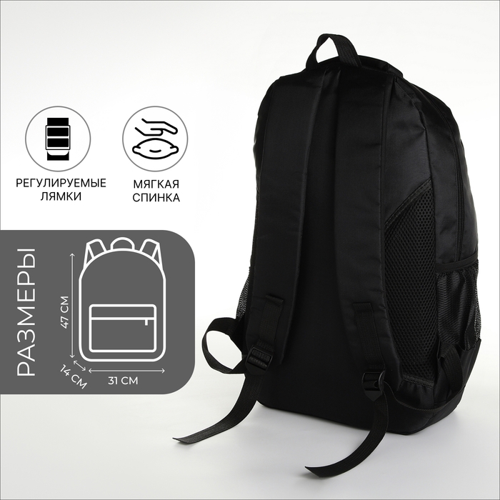 Рюкзак молодёжный на молнии, 4 кармана, цвет чёрный