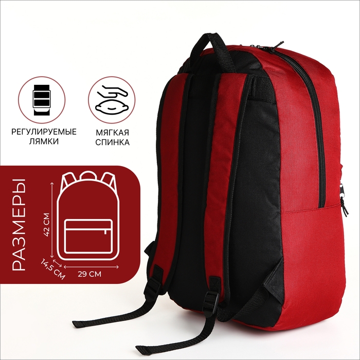 Рюкзак школьный на молнии, наружный карман, цвет бордовый