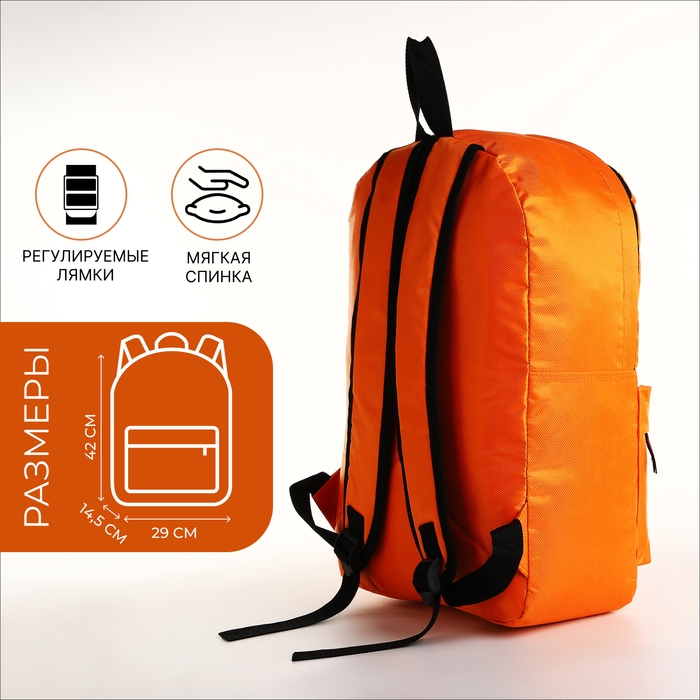 Рюкзак школьный на молнии, наружный карман, цвет оранжевый