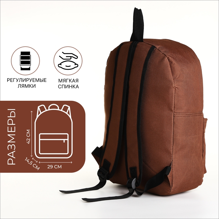 Рюкзак школьный на молнии, наружный карман, цвет коричневый