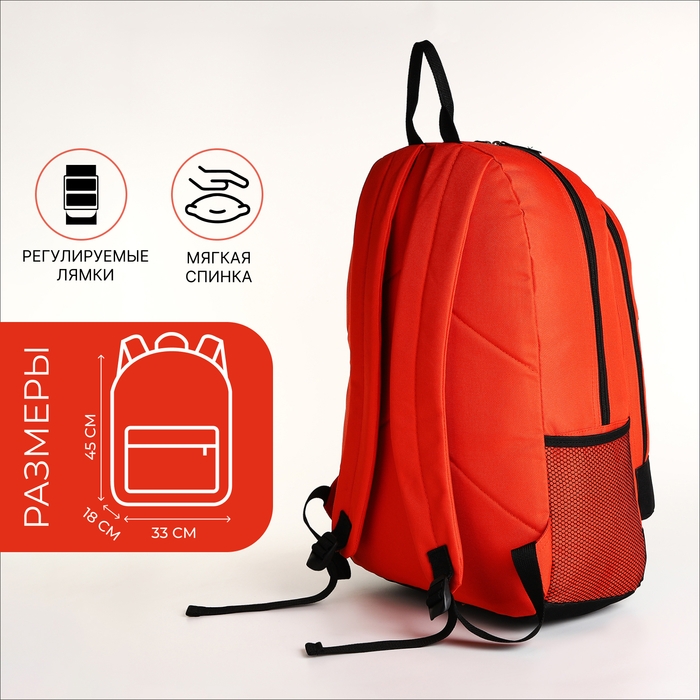 Рюкзак школьный на молнии, 3 кармана, цвет оранжевый