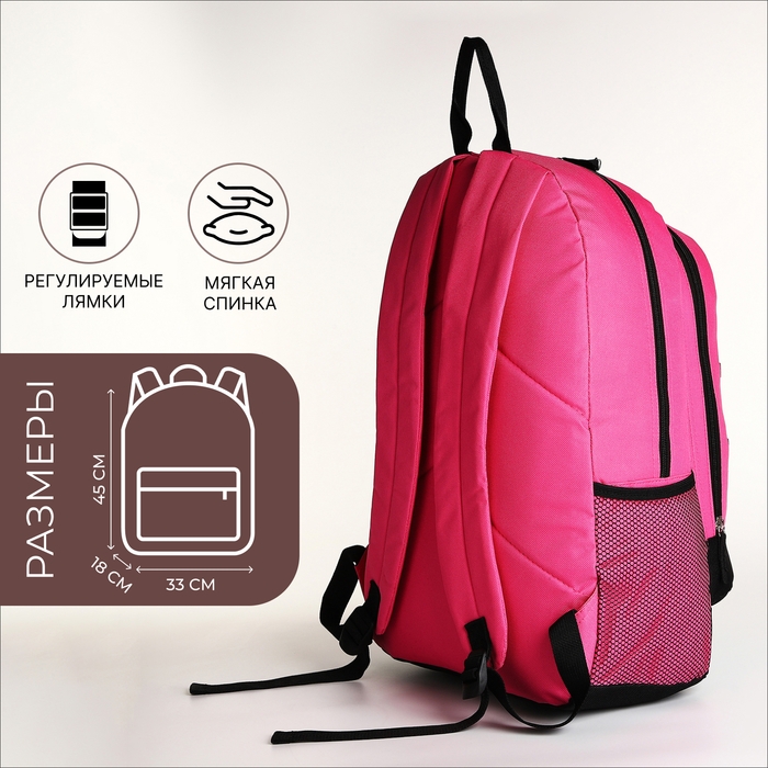 Рюкзак школьный на молнии, 3 кармана, цвет розовый