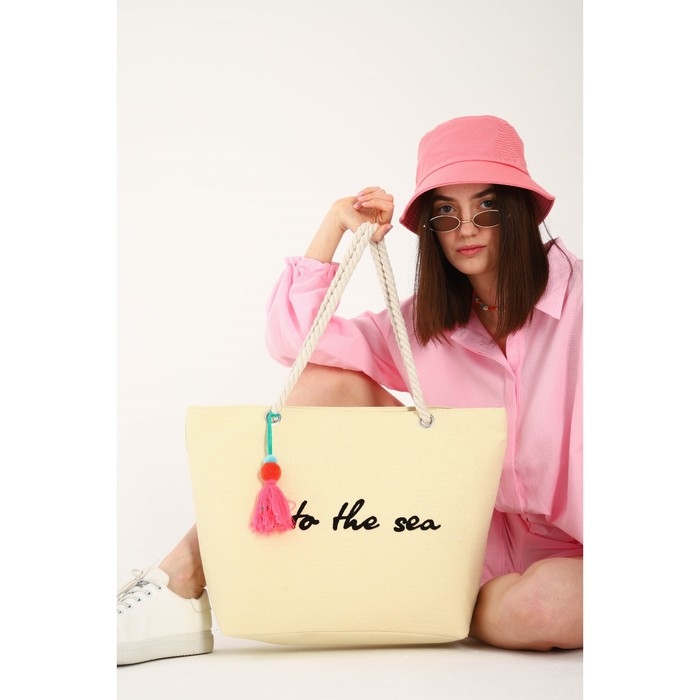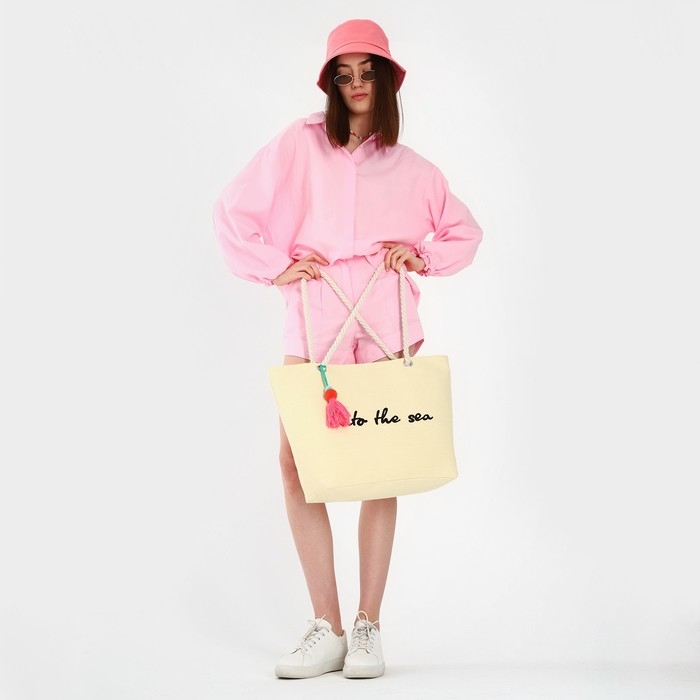 Сумка женская пляжная Into the sea, 50х34,5х14 см, бежевый цвет