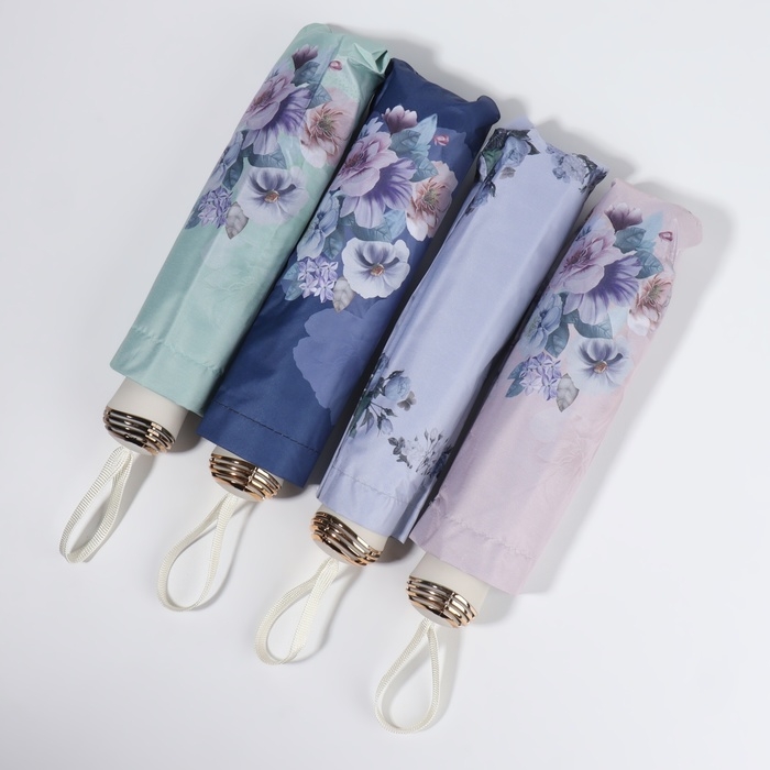 Зонт механический «Фиалки», эпонж, 4 сложения, 8 спиц, R = 47/55 см, D = 110 см, цвет МИКС