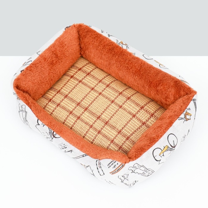 Лежанка для животных + ротанговый коврик, двухсторонняя подушка, 45 х 30 х 15 см