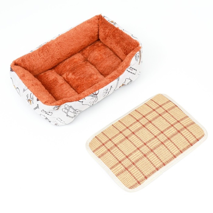 Лежанка для животных,мебельная ткань, холлофайбер, 50 х 40 х 15 см, микс цветов