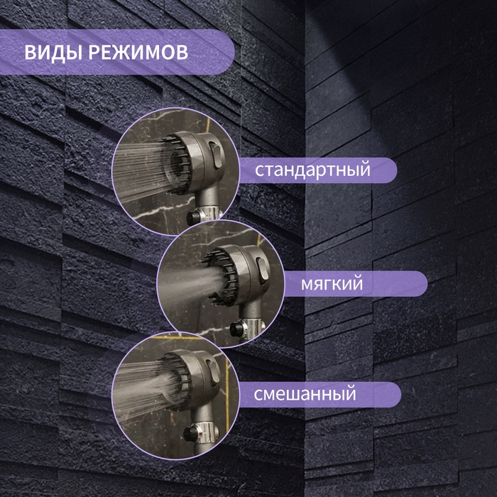 Лейка для душа ZEIN Z3550, d=80 мм, 3 режима, с массажными зубчиками, кнопка "стоп", графит