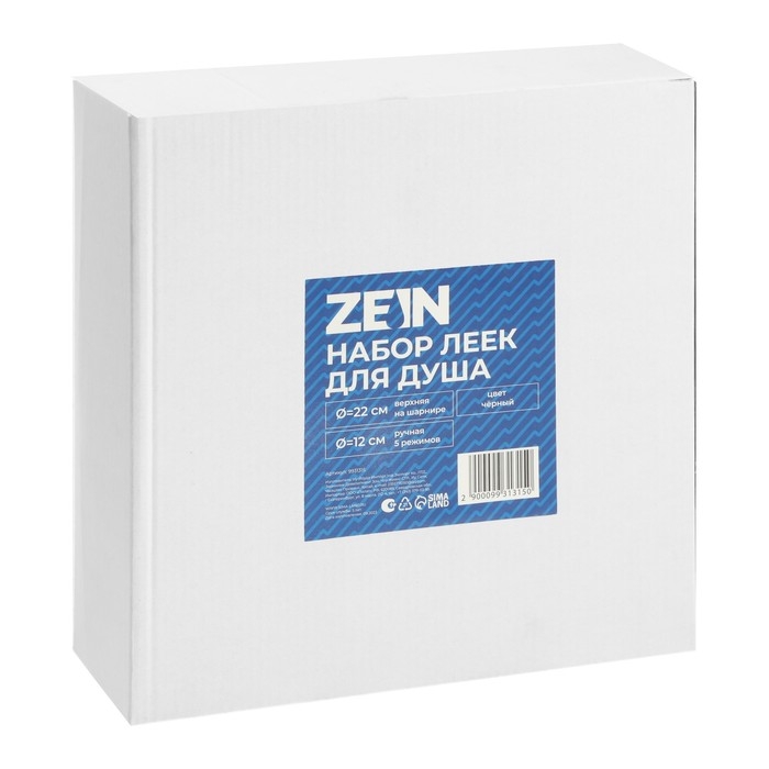 Набор леек для душа ZEIN Z3558, верхняя на шарнире d=22 cм, ручная 5 режимов d=12 cм, черная
