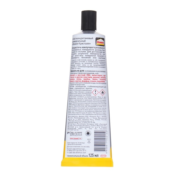 Клей Момент Кристалл 125 мл, 1 шт — идеальное решение для прозрачных материалов. Не оставляет видимых следов, образует незаметный шов. Состав отличается высокой скоростью схватывания и повышенной устойчивостью к влаге.