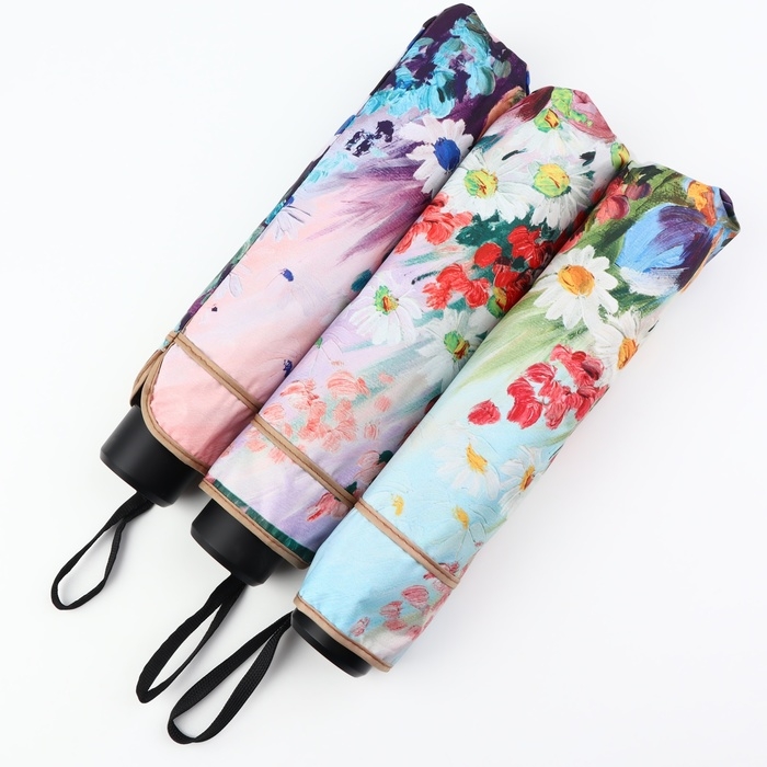 Зонт механический «Цветочная картина», эпонж, 4 сложения, 8 спиц, R = 48/55 см, D = 110 см, цвет МИКС