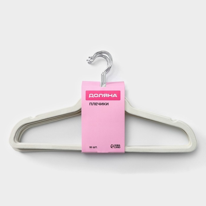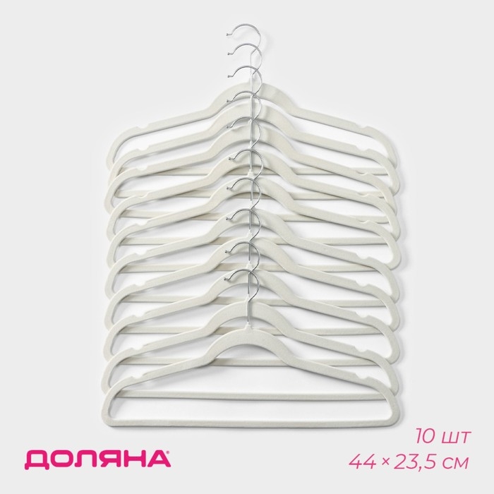 Плечики - вешалки для одежды Доляна, 44×23,5 см, 10 шт, флокированное покрытие, цвет белый