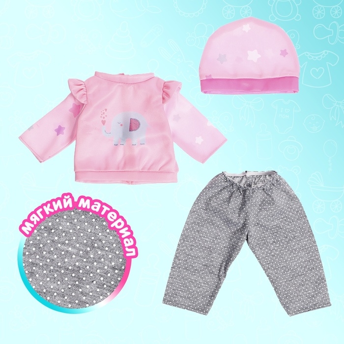Одежда для пупса «Слоник», штаны, кофточка, шапочка