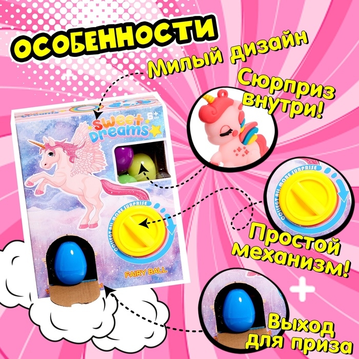 Детский игровой автомат «Любимый единорог» с игрушками, в наборе 6 шаров-сюрпризов