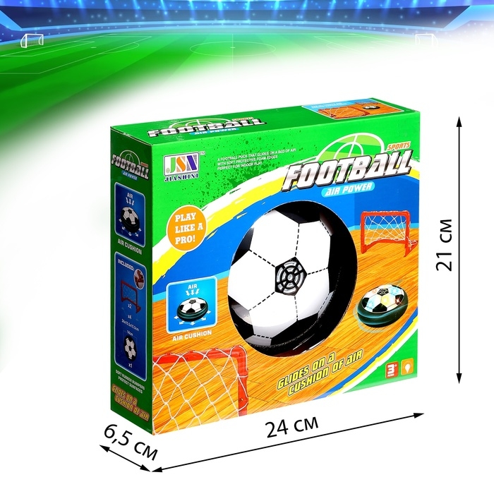 - Полноценный комплект для игры в футбол дома — включает ворота и аэромяч.
