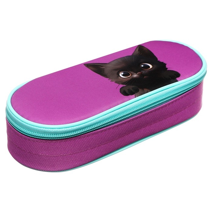 Пенал-футляр 95 х 205 х 45 мм, мягкий, текстильный, Calligrata, ПМК 27-20 резинка на клапане, "Котик черный"