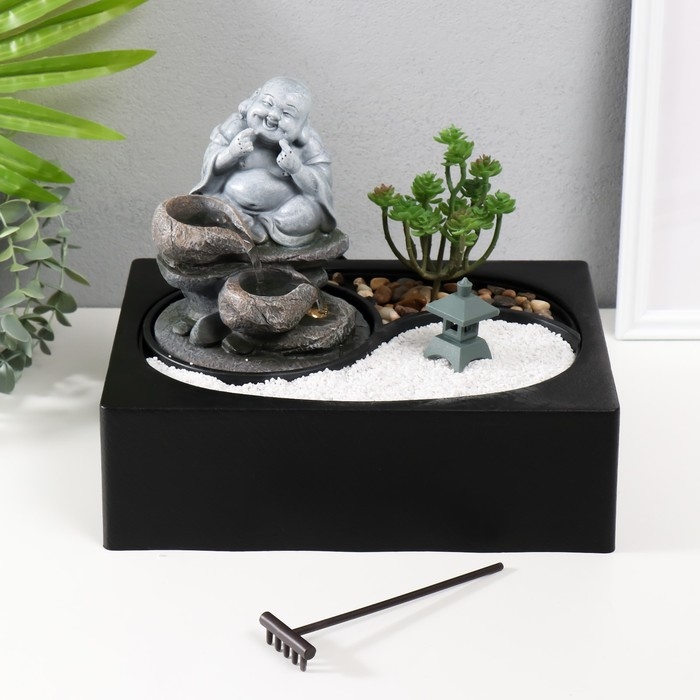 Фонтан настольный от сети, подсветка "Хотей на камнях" 29х21х22 см